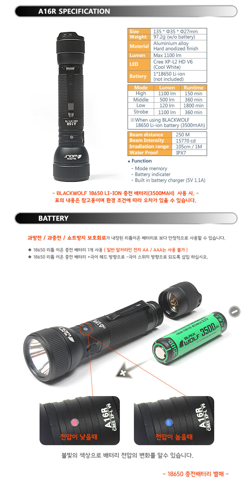 04/13 열흘만에 블랙울프 A16R XP-L V6 라이트(1100루멘) 구입...