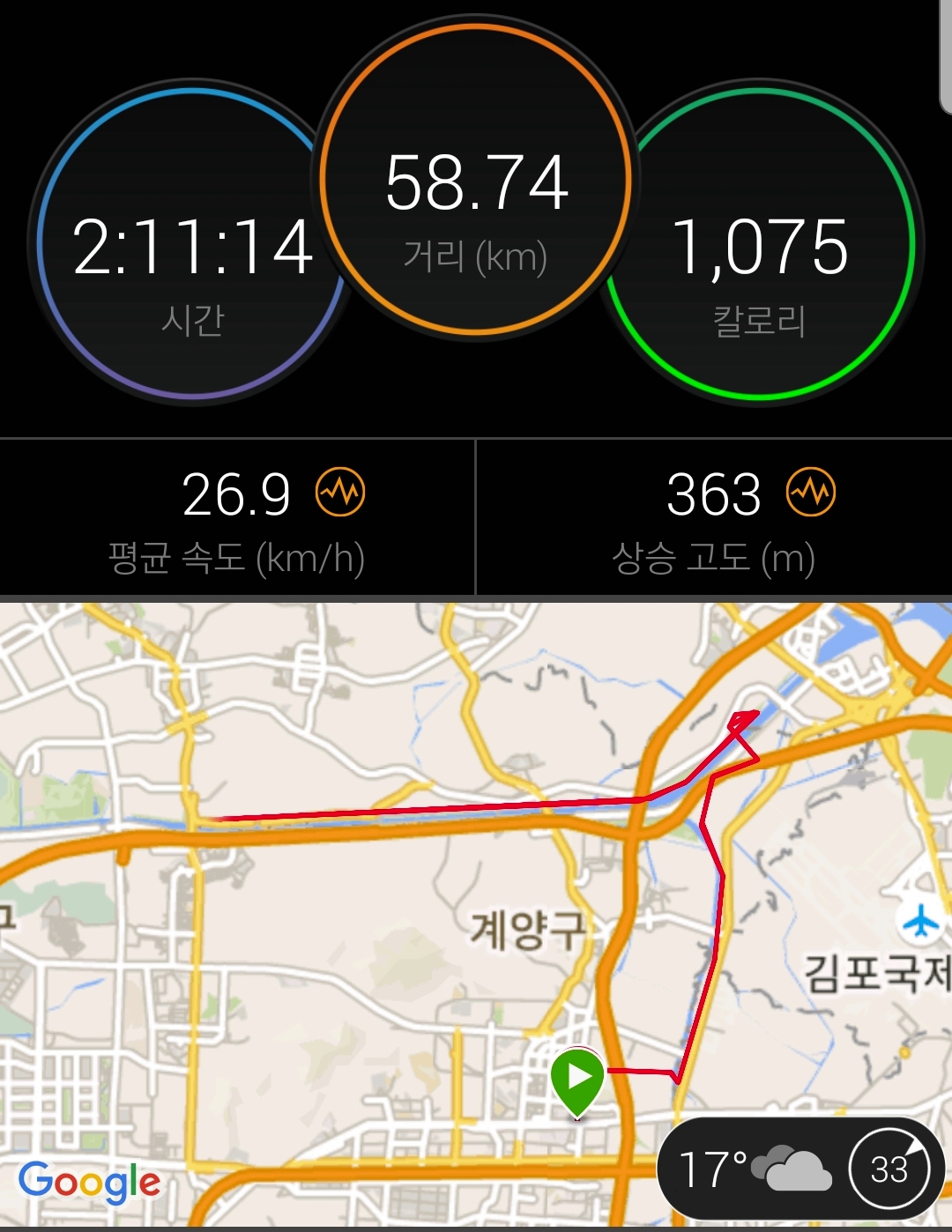 2020.05.19(화) 아라마루 왕복 3회... (58.74Km)