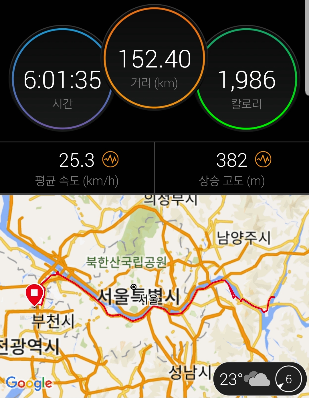 중간 중간 파워젤과 마지막 방화대교에서 보급으로 라이딩 했는데, 다음엔 돌아오기 전 점심 먹고 오는 거로...