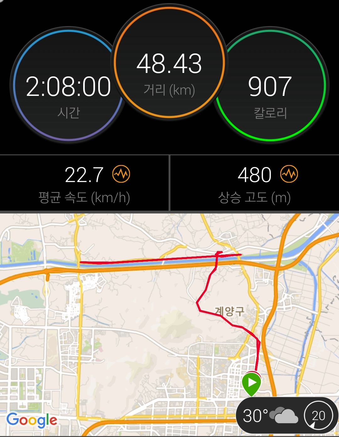 2020.08.05(수) 아라마루 왕복 3회... (48.43Km)