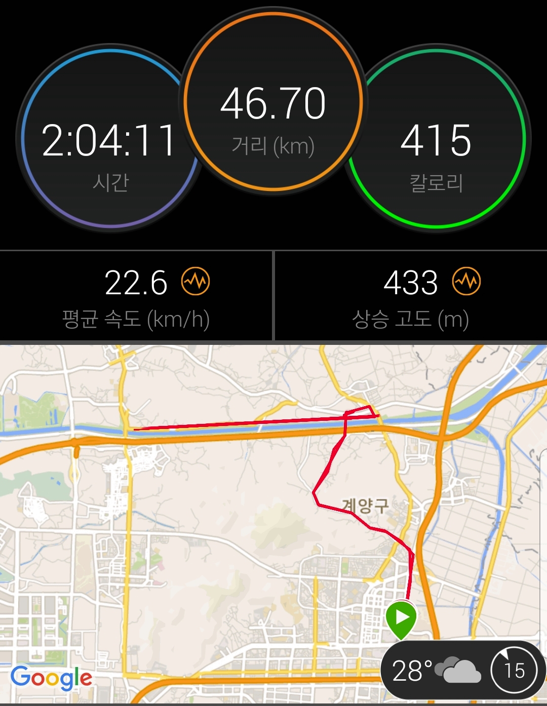 아라마루 왕복 라이딩 후 계양대교 북단...