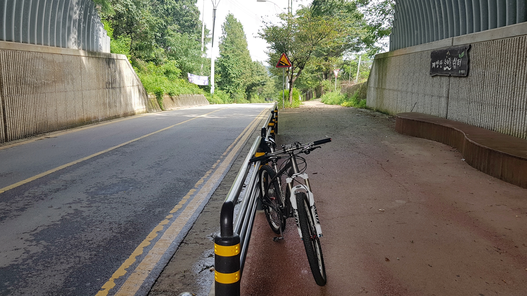 현재 도로 상태는 물기가 다 말라 양호 한 상태...