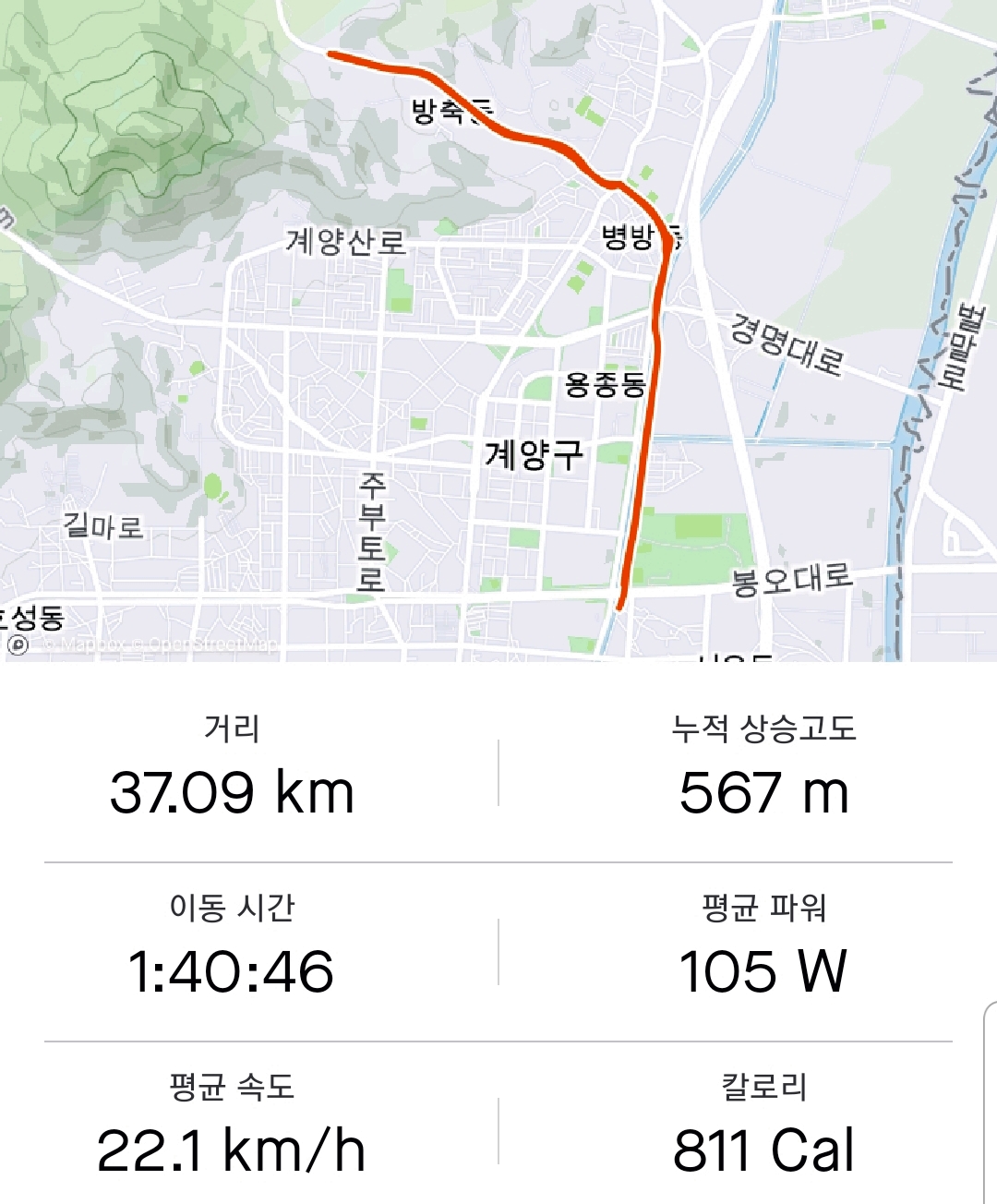 어린이과학관에서 신의주고개 생태터널까지만 업힐 왕복 하는 거로...