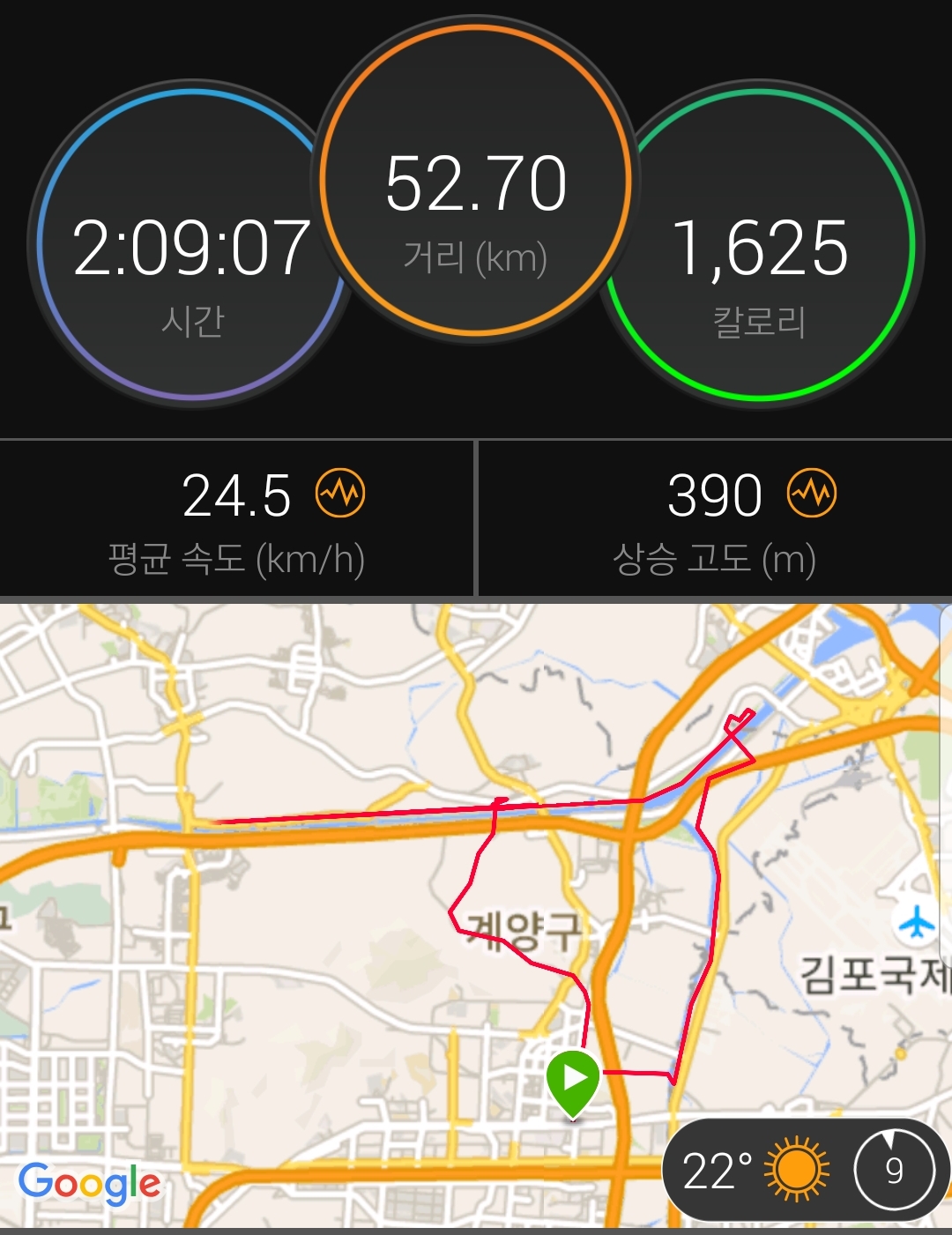 2020.10.07(수) 아라마루 왕복 3회... (52.70Km)