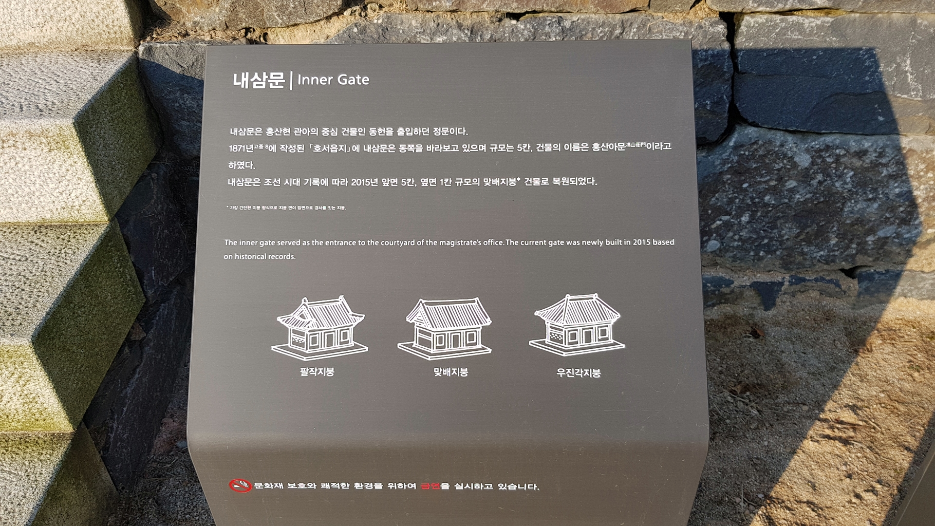 내삼문(맞배지붕 건물)... 내삼문은 홍산현 관아의 중심 건물인 동헌을 출입하던 정문...