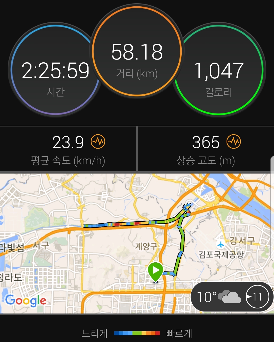 2020.11.25(수) 아라마루 왕복 3회... (58.18Km)