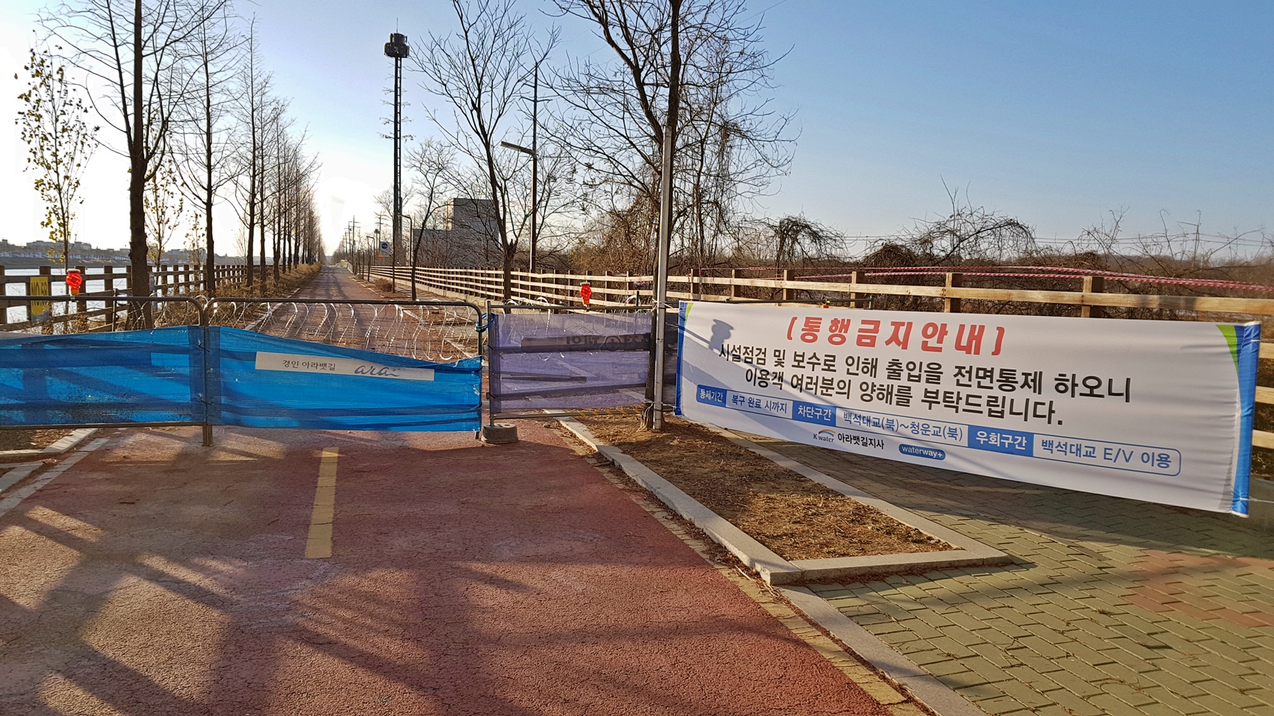 백석대교 아래... 청운교까지 통행금지(시설 점검 및 보수)...
