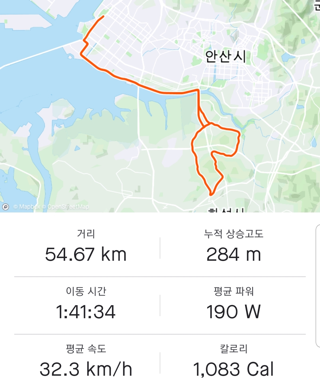 대부도입구 사거리 오이고가교 아래에서 라이딩 종료 후 혼자 주차장으로 돌아와 귀가 준비 중에...