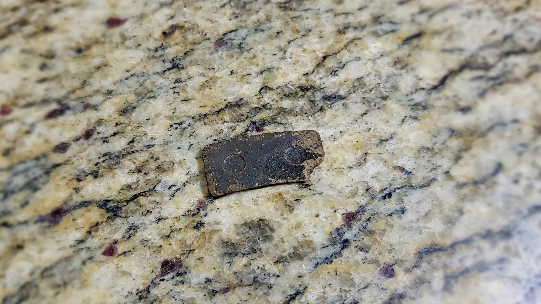 뒷바퀴 분리 중에 떨어진 브레이크 패드...