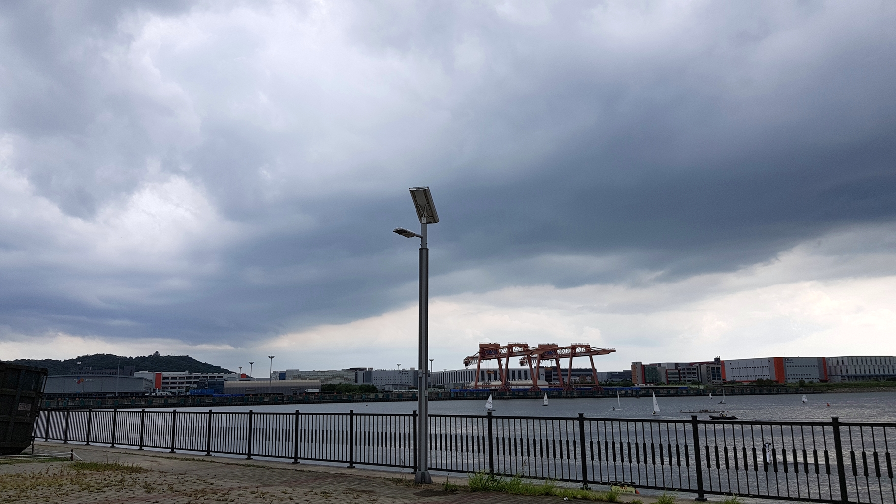 왕복 3회 후 돌아오는 길 아라뱃길 한강갑문 쪽은 비가 내리지 않아 잠시 셀카 찍고는 돌아옴...
