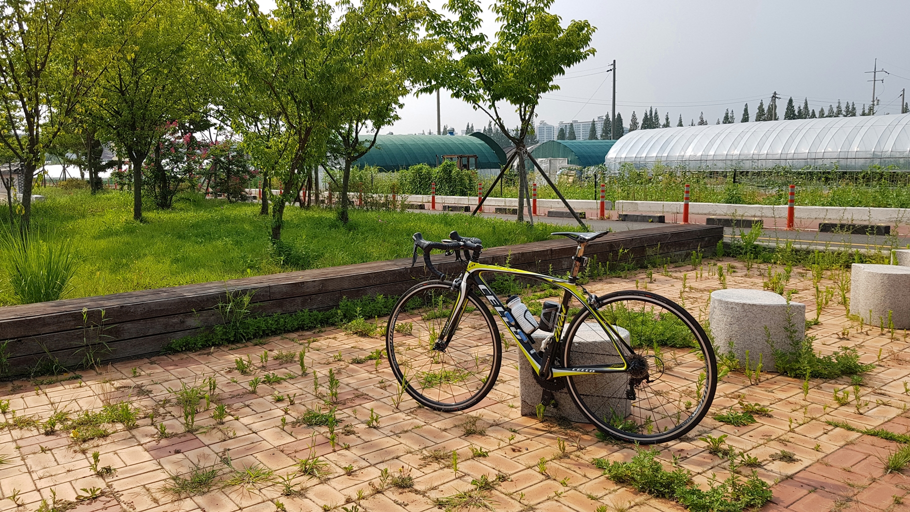 아라뱃길 북단 김포터미널물류단지 쪽 하나교까지 갔다가 되돌아 와 수향원에서 인증샷을...