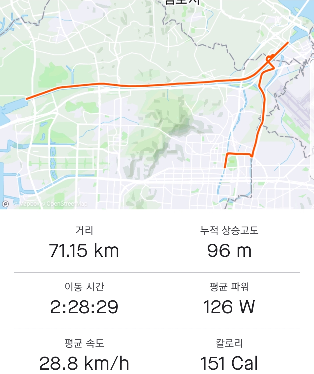 아라뱃길 북단 정서진 쪽 갔다 와서는 거리를 70Km 이상 나오도록 왔다 갔다 좀 하다가 돌아옴...