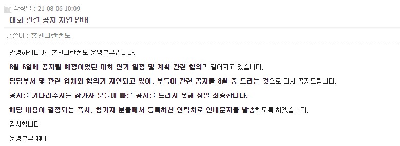 2021.08.23(월) 홍천그란폰도 대회 또 내년으로 연기...