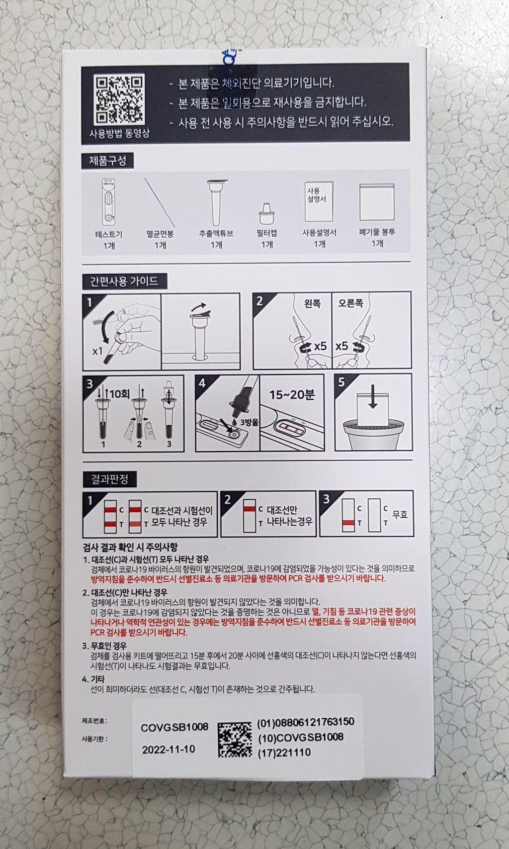 외지에서 1박 이상 했으면 출근 전 코로나19 바이러스 항원 확인 후 이상 없으면 출근하라는 회사 방침에 따라...