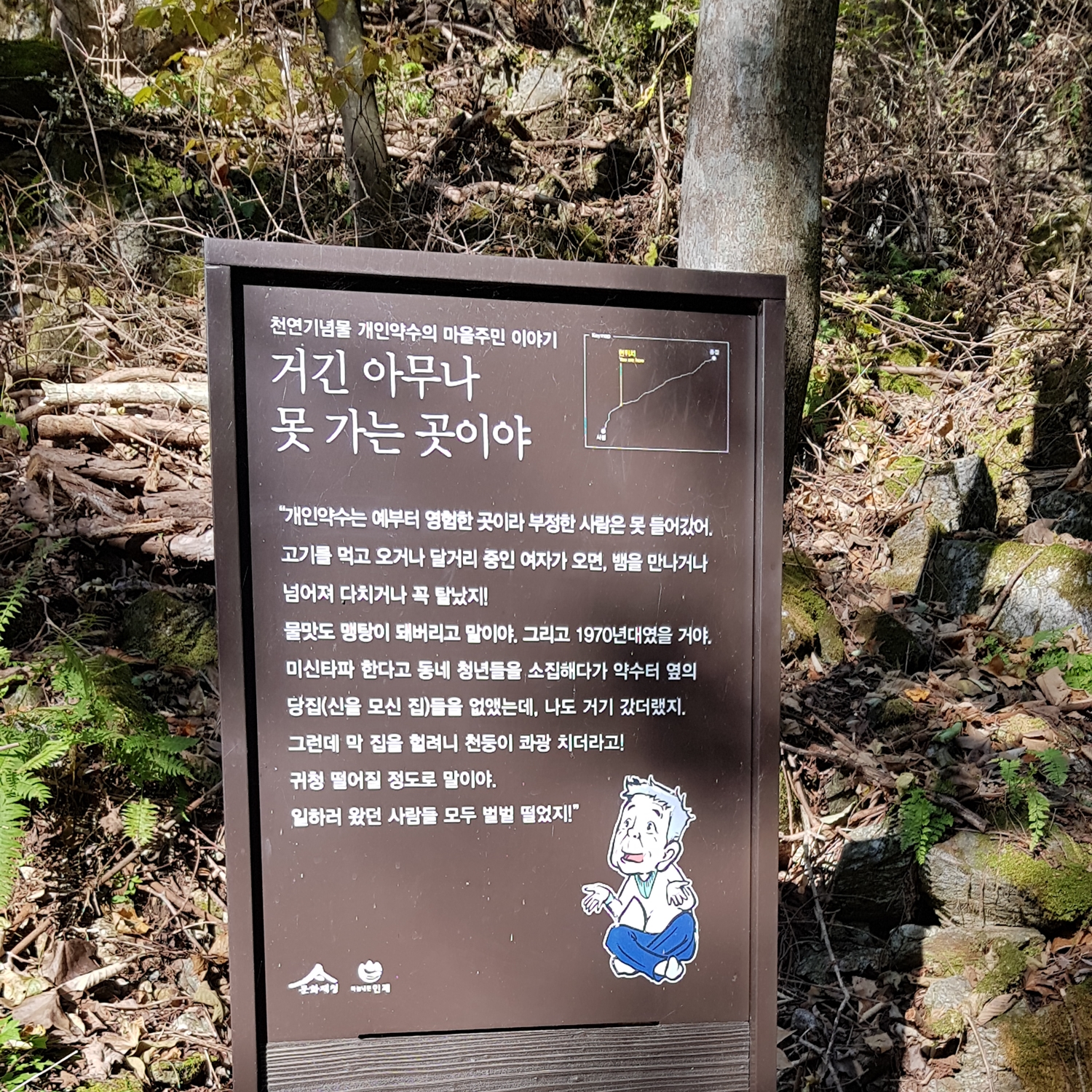 개인약수의 마을주민 이야기 등 개인약수 관련 푯말이 대략 10개 정도 되는 듯...