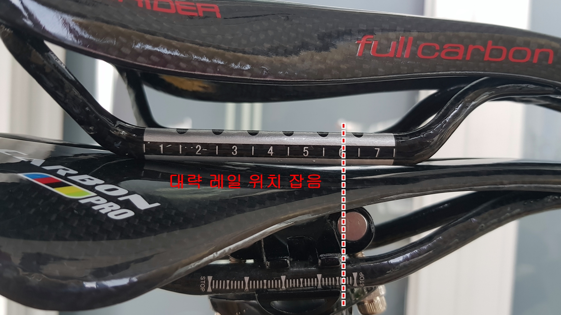 라이딩 하면서 안장 높이가 좀 높다 느꼈는데 레일 위치만 확인했지 안장 높이를 확인하지 않았었음...