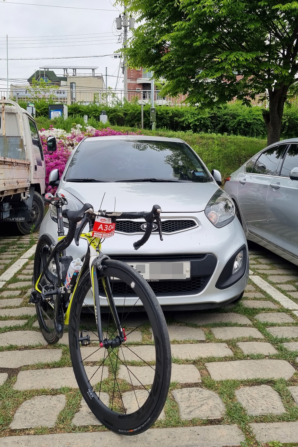 대회 마치고 자전거 차에 적재 그리고는 완주 메달 받으러...