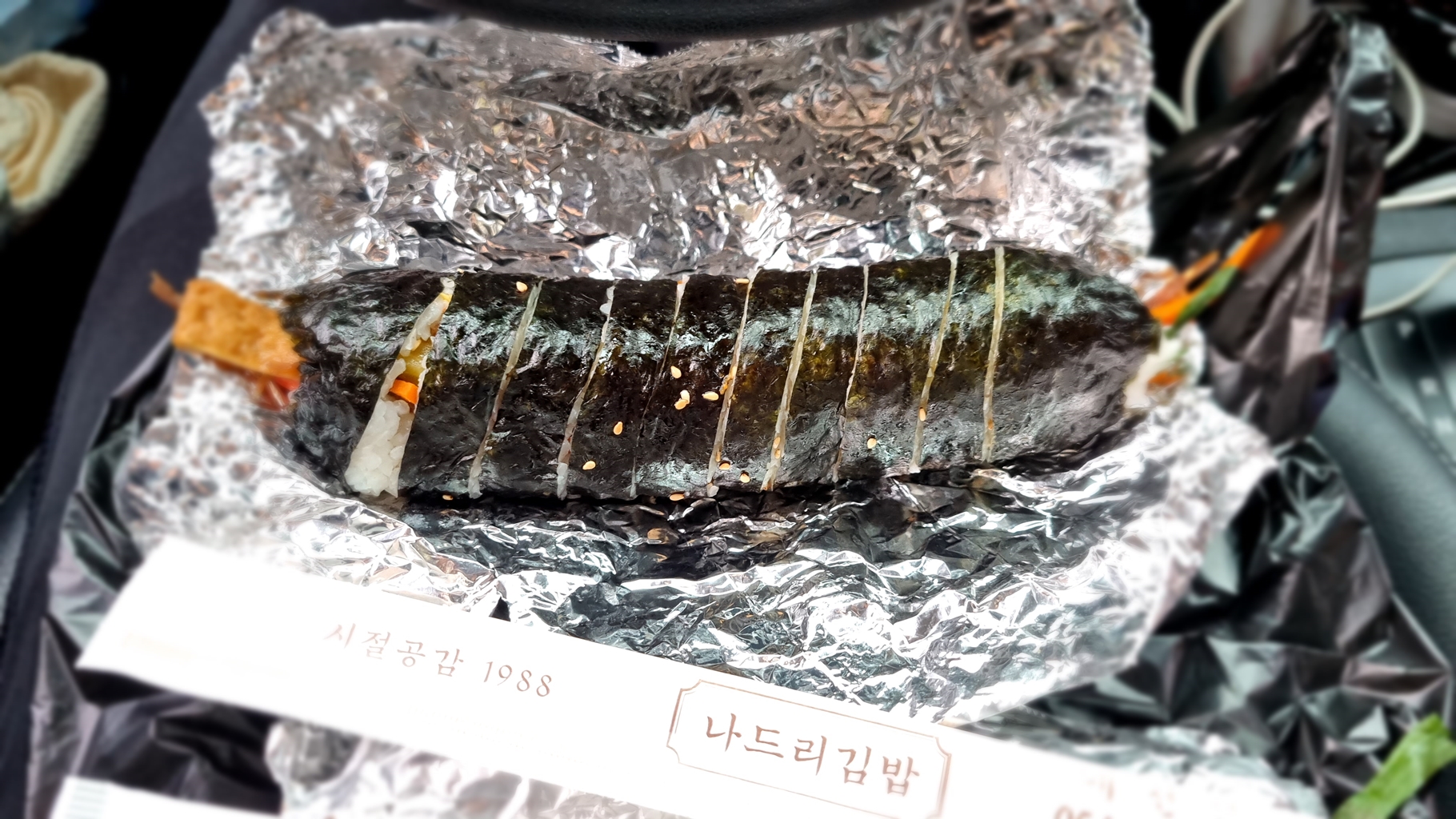 식당 찾을 필요 없이 김밥먹으러 갔는데 앉을 자리가 없어 김밥 두줄 포장해 가져옴...