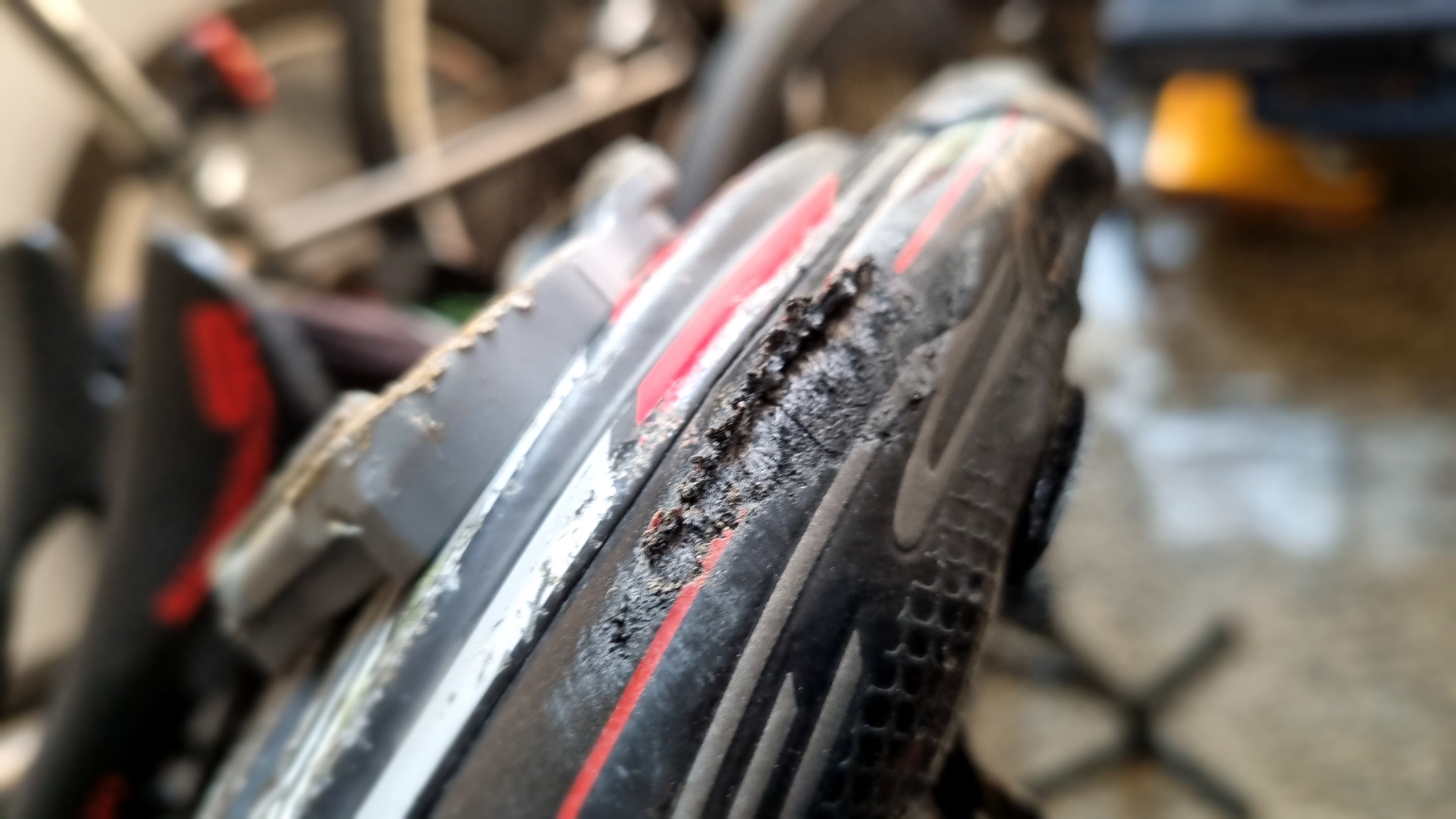 자전거는 앞바퀴 타이어 일부가 이탈, 삐져 나왔으며 휠에 굽힘이 있었는데...