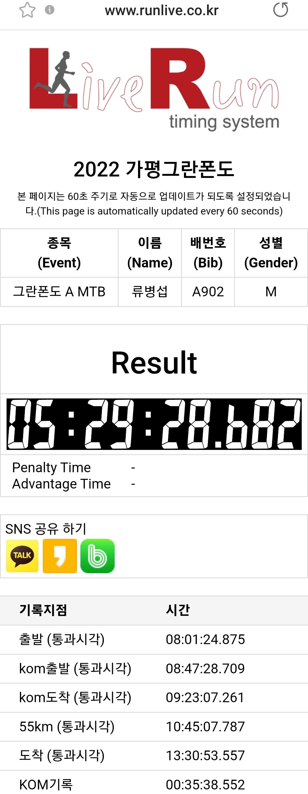계측기에 오류로 K.O.M 기록을 알 수 없어 추후 개별 통보 한다고...