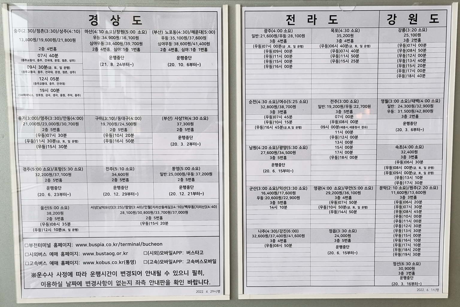 안양시외버스정류장, 호계시외버스정류장 두곳 경유 후 강릉으로...