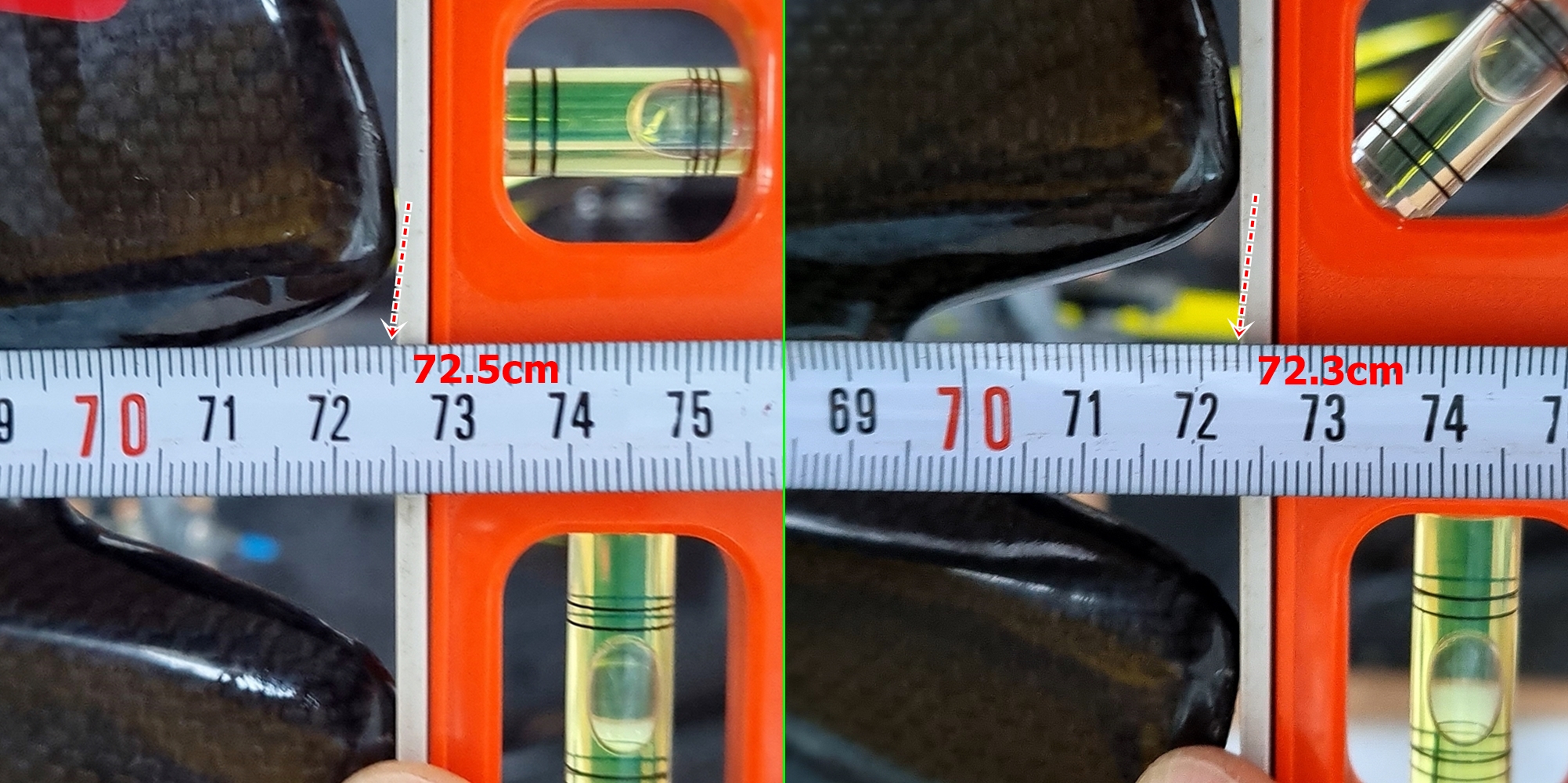 이번엔 안장 위치 이동 전 스템 앞쪽 중앙 부분에서 안장 맨 뒷부분까기의 길이를 측정 후 조절 함...