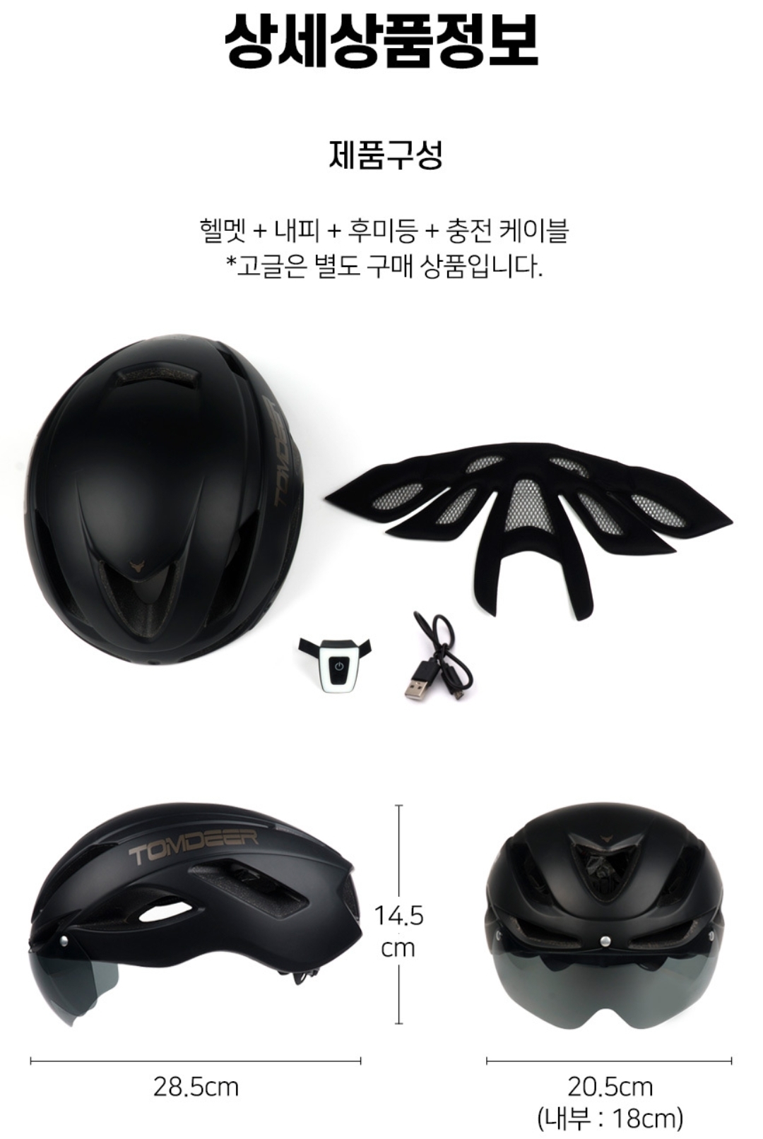 후미등겸용 톰티어 에어로 헬멧 276g, 실측 310g...