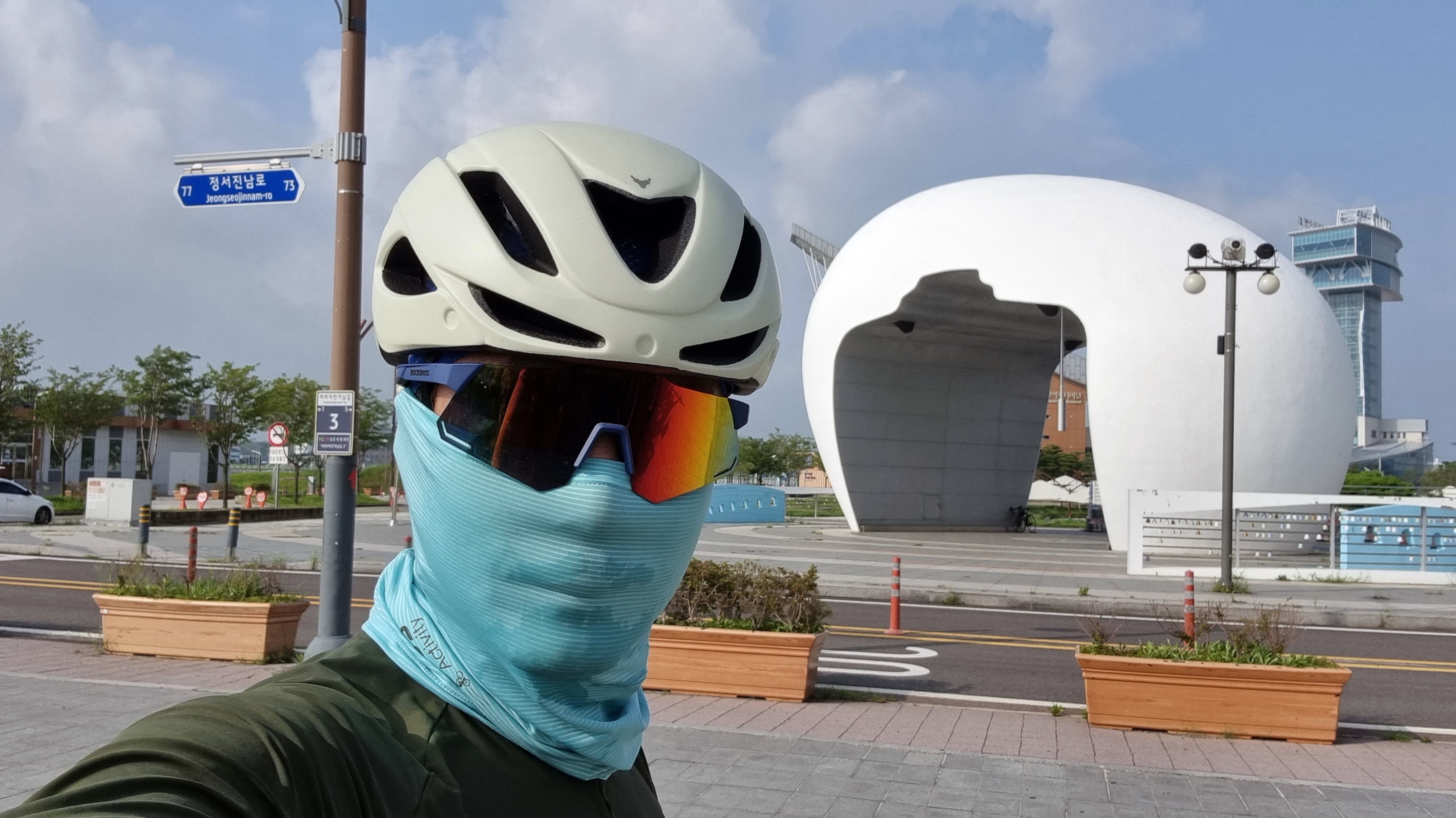 새 헬멧이 에어로 헬멧이라 그런지 기존 것에 비해 무겁긴 하지만...