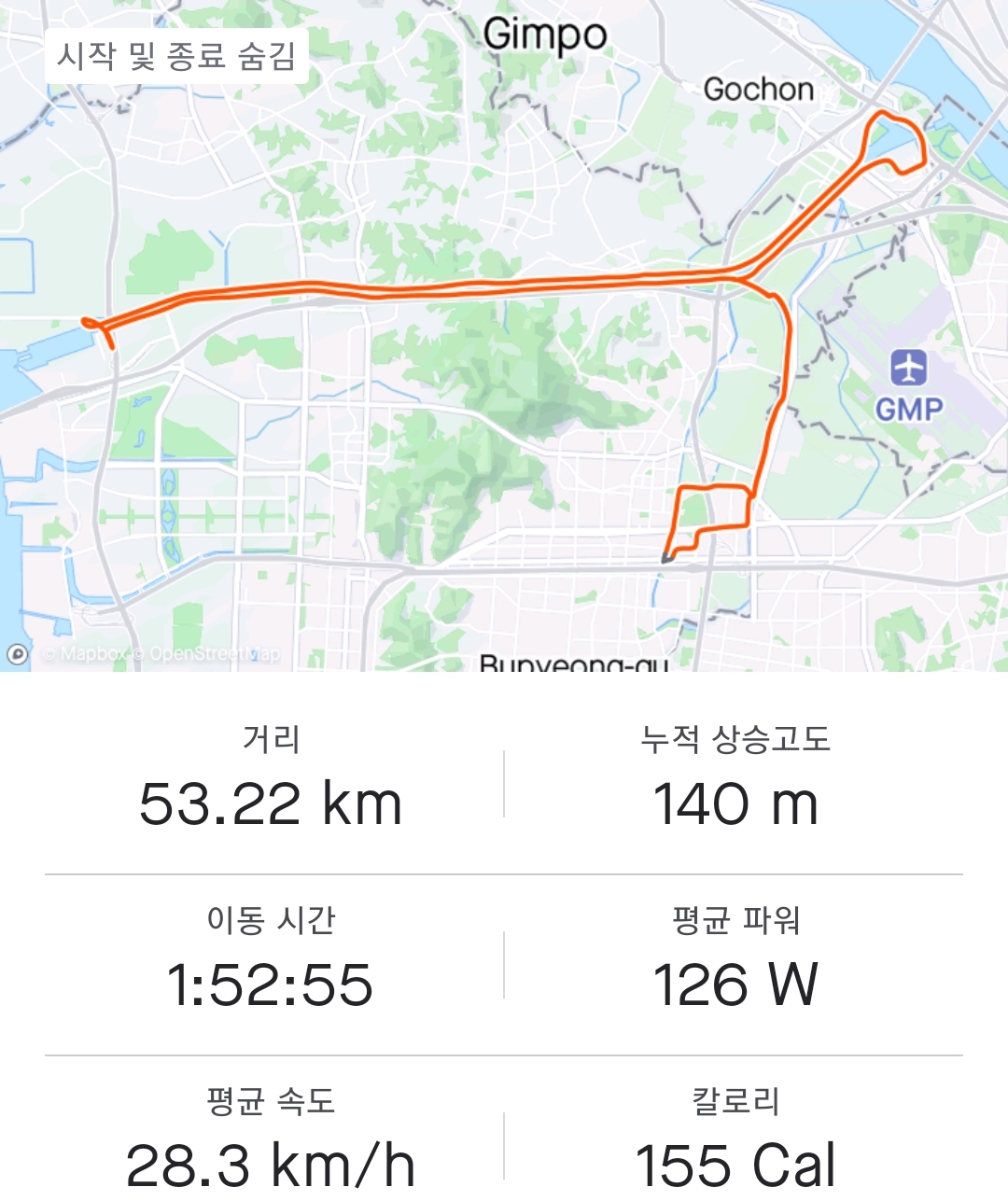 2022.09.15(목) 아라뱃길 한바퀴... (53.22Km)