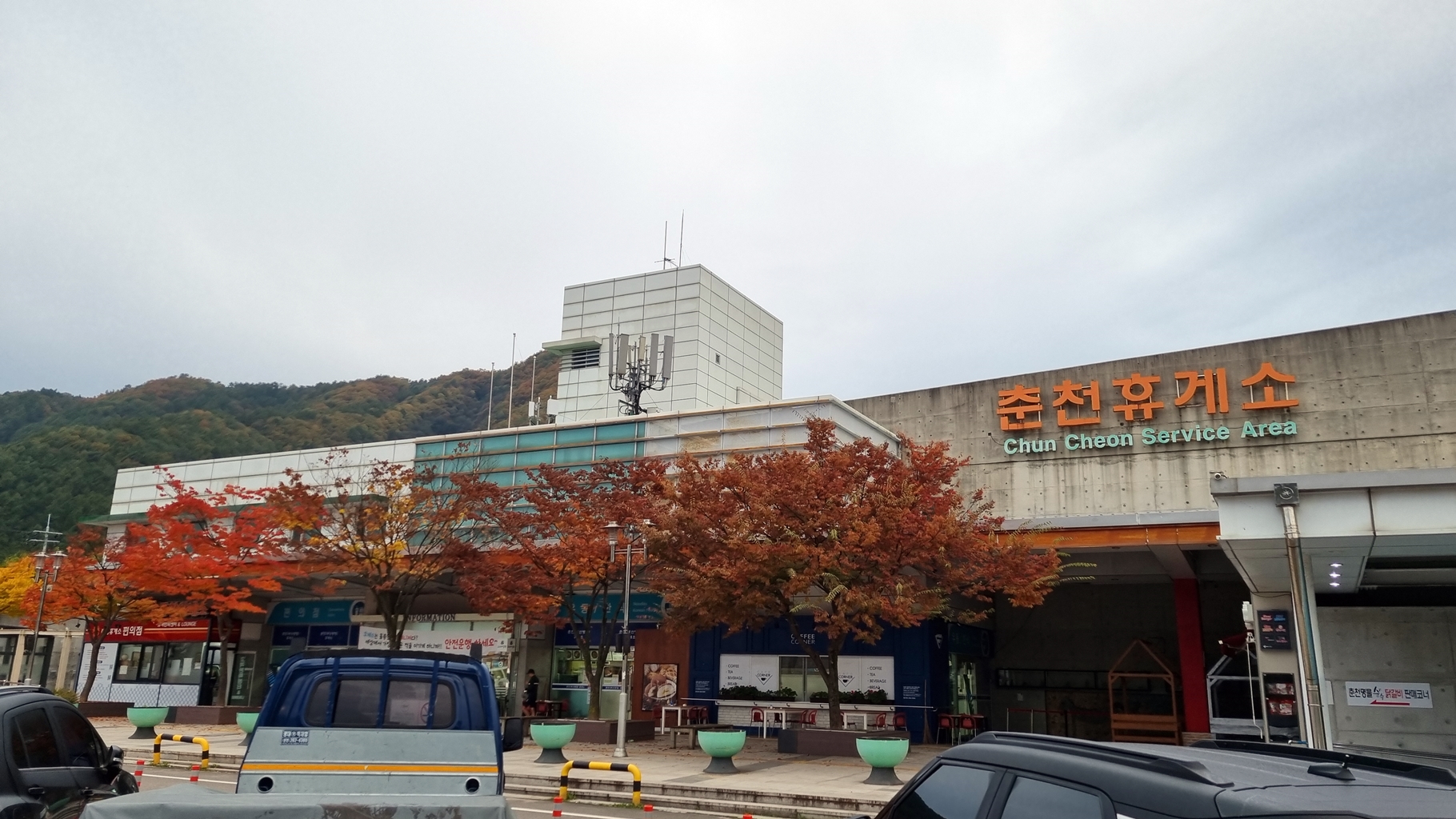 이번엔 다음 휴게소인 춘천휴게소에서 하기로 하고 춘천휴게소 들어감...