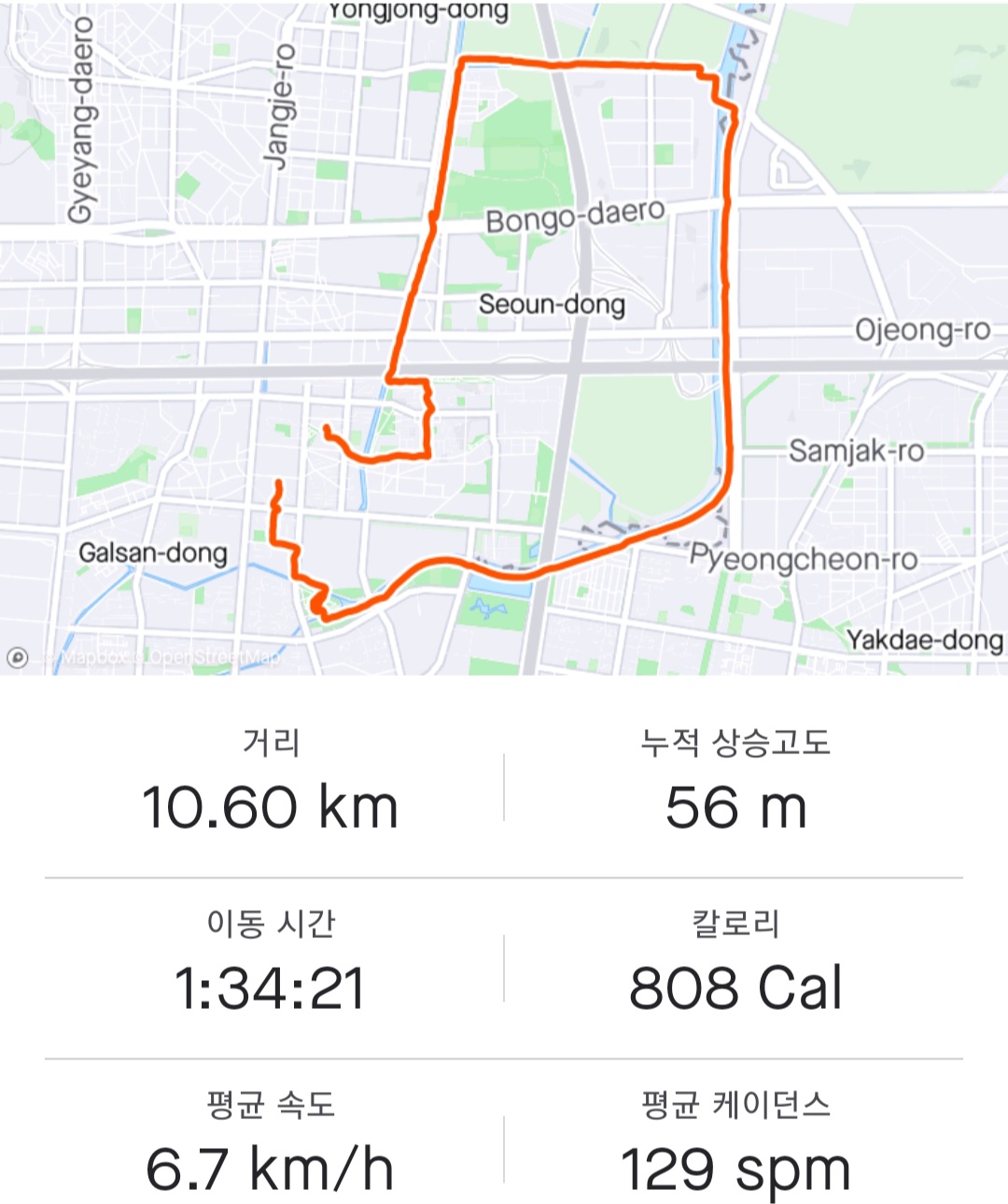 오늘은 걷다가 2.5Km 정도 조깅도 함...