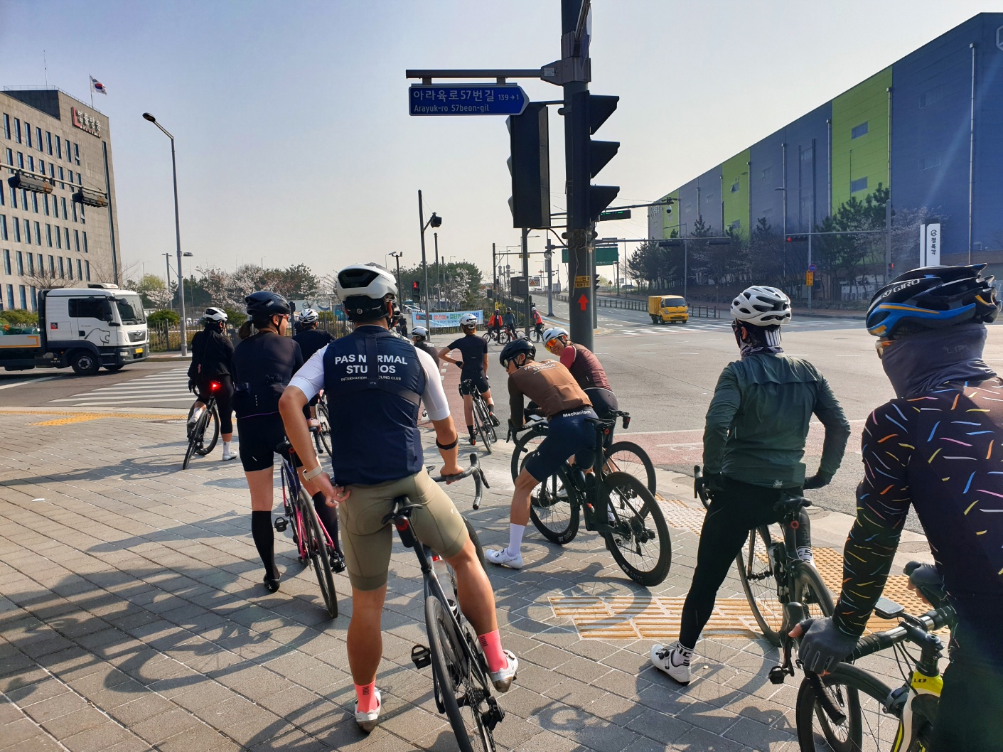 가루토반 일산대교 방향 끝부분에서 네명의 마중 나온 TNS 멤버와 합류 후 아라MTB 까지...