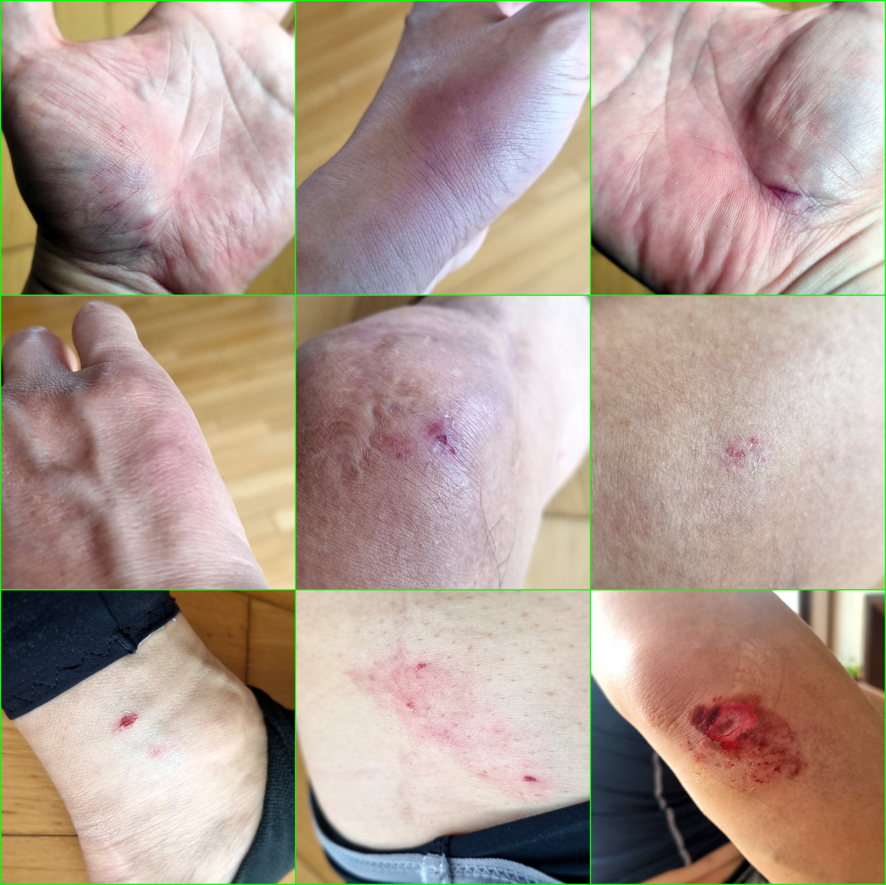 낙차에 의한 긁힘, 찢김, 타박상과 찰과상 등등...