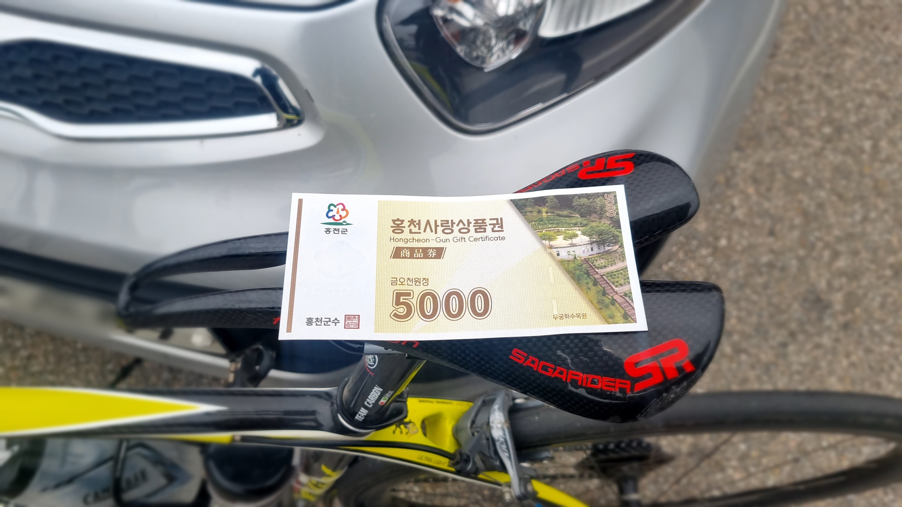 피니쉬 도착 후 홍천사랑상품권(5,000원) 받고는 차로 가 대회 마무리 하려 했는데...