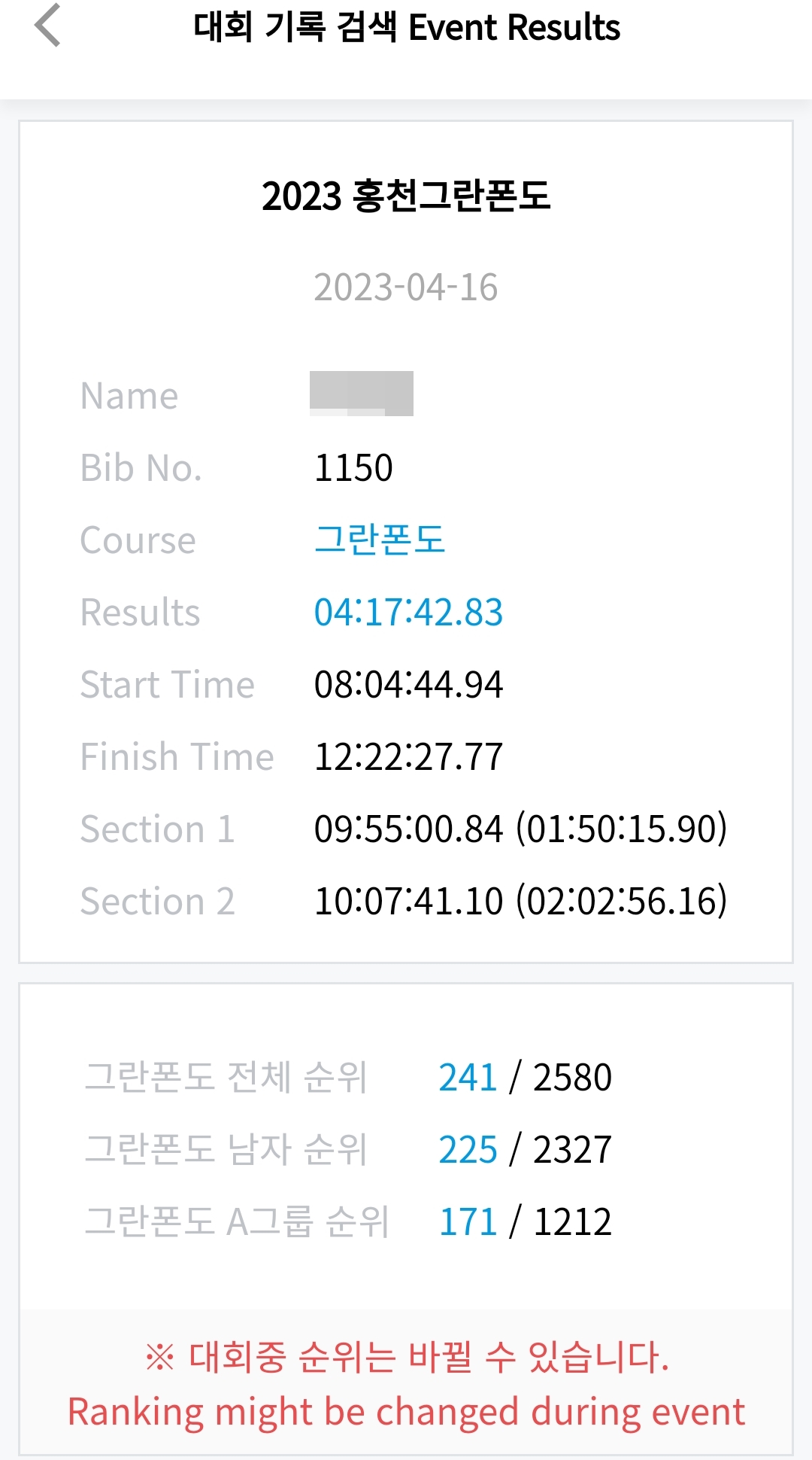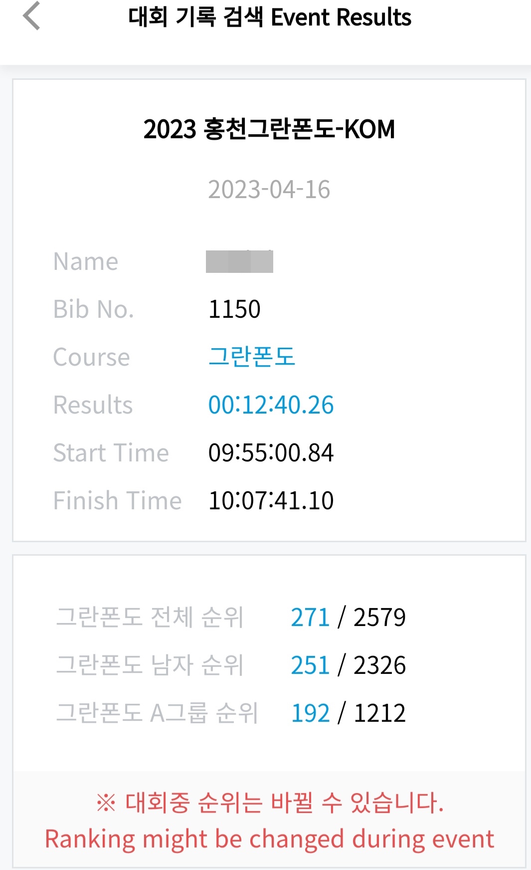 A그룹으로 앞쪽에 있었다 생각했는데 운동장 출구 빠져 나오기가 많이 힘듦...