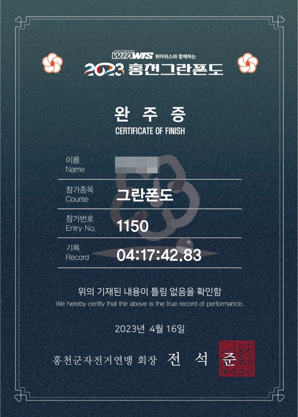 | 2023.01.16(월) 홍천 그란폰도 개인접수신청 완료 메시지... (0) | 2023.01.16 |