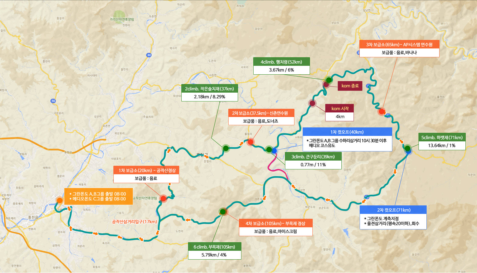 모든 그란폰도에서 그랬지만 이번에도 보급소는 모두 들렀다 가는 거로...