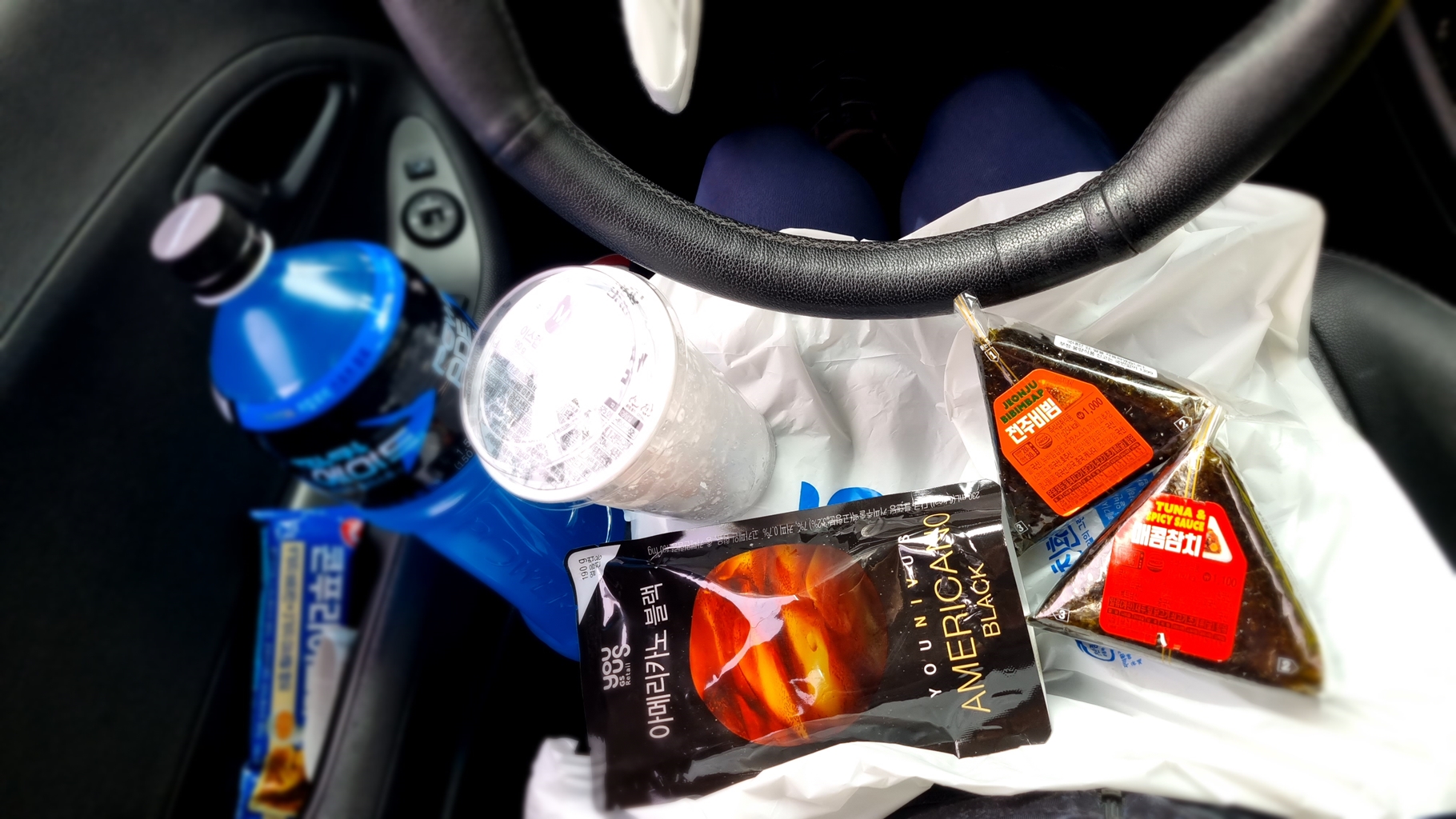 12:52... 대회 후 출발 전 점심으로 삼각김밥과 커피...