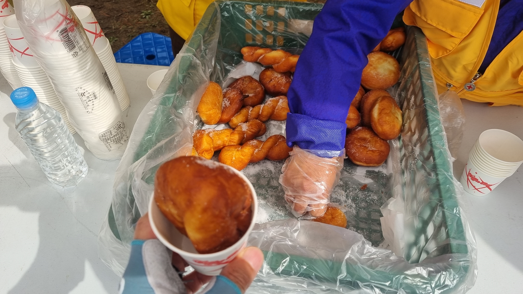 보급소를 그냥 지나치는 사람들도 있어 2차 보급소에서 도넛과 꽈배기 둘다 먹으려 했는데...