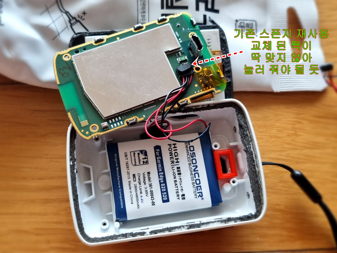배터터를 기판과 연결하는 짹 부분이 기존거와 달리 잘 결합되지 않음...