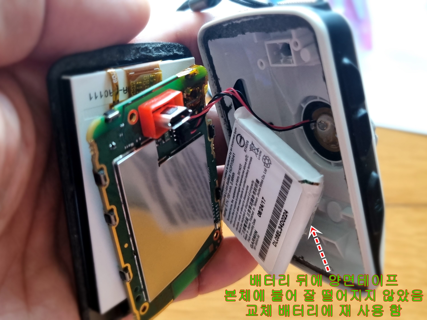 배터리에 붙어 있던 양면테이프는 교체 배터리에 재 사용...