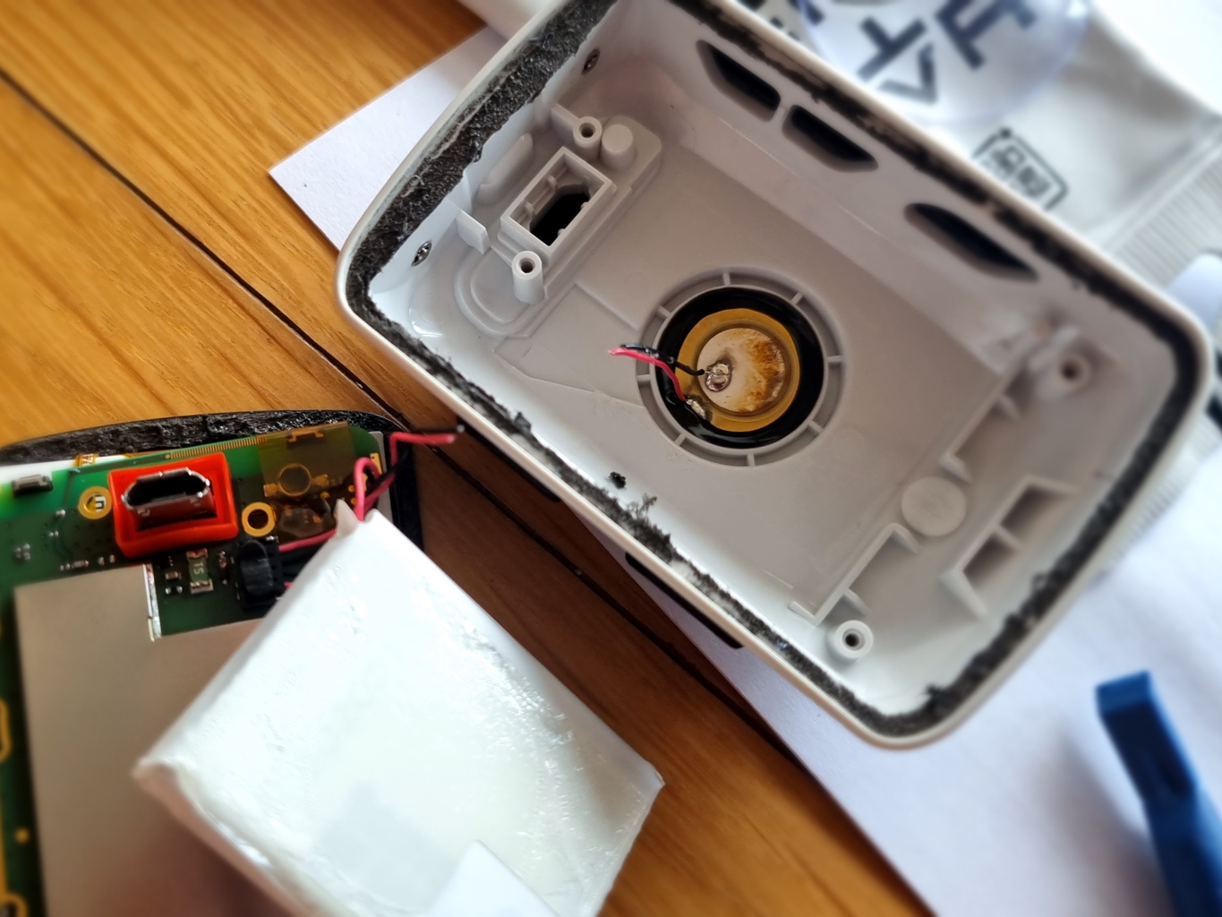 기존 배터리와 본체 스퍼커 연결 선 잘라낼 때 중간 정도에서 절단...