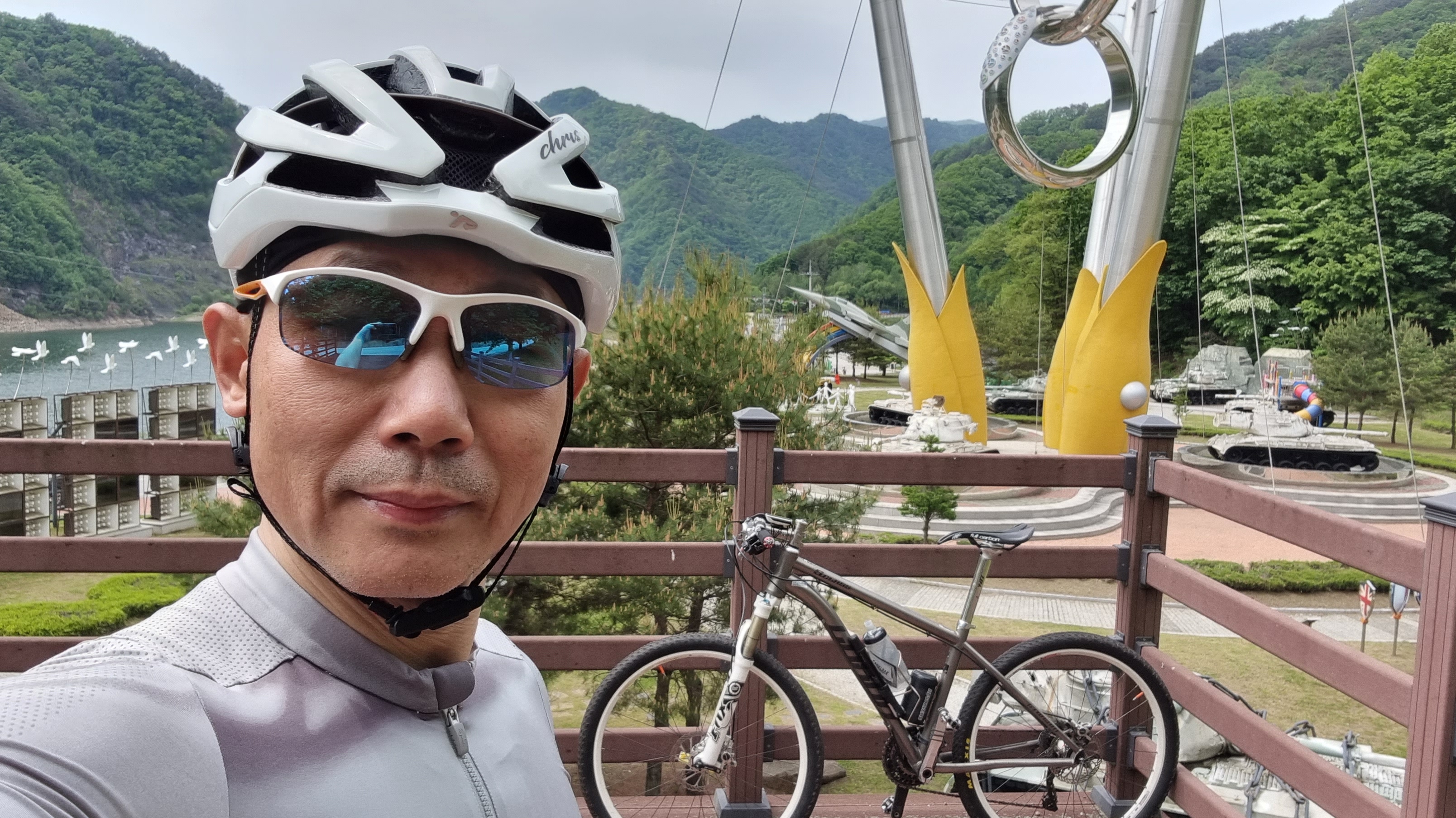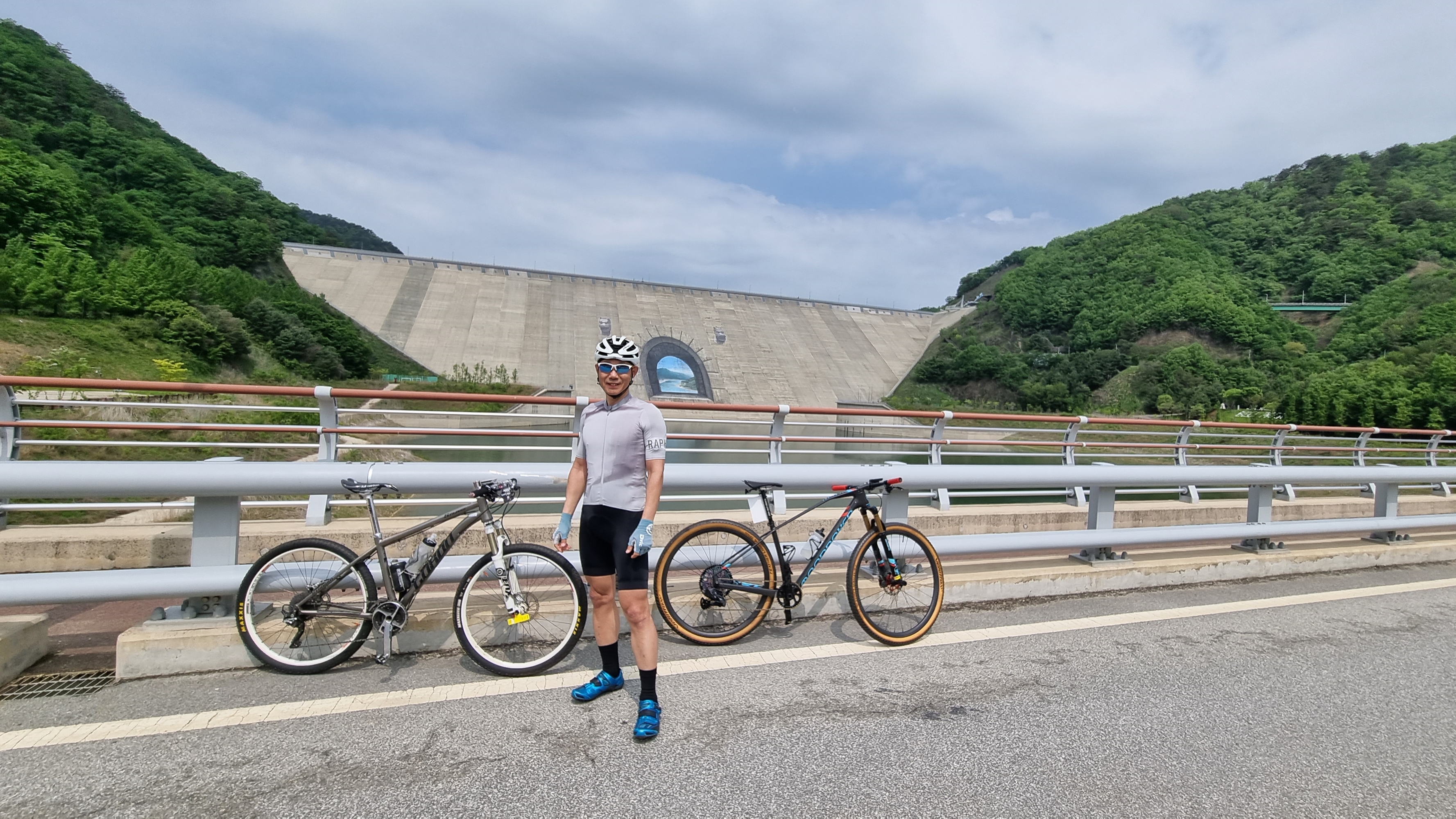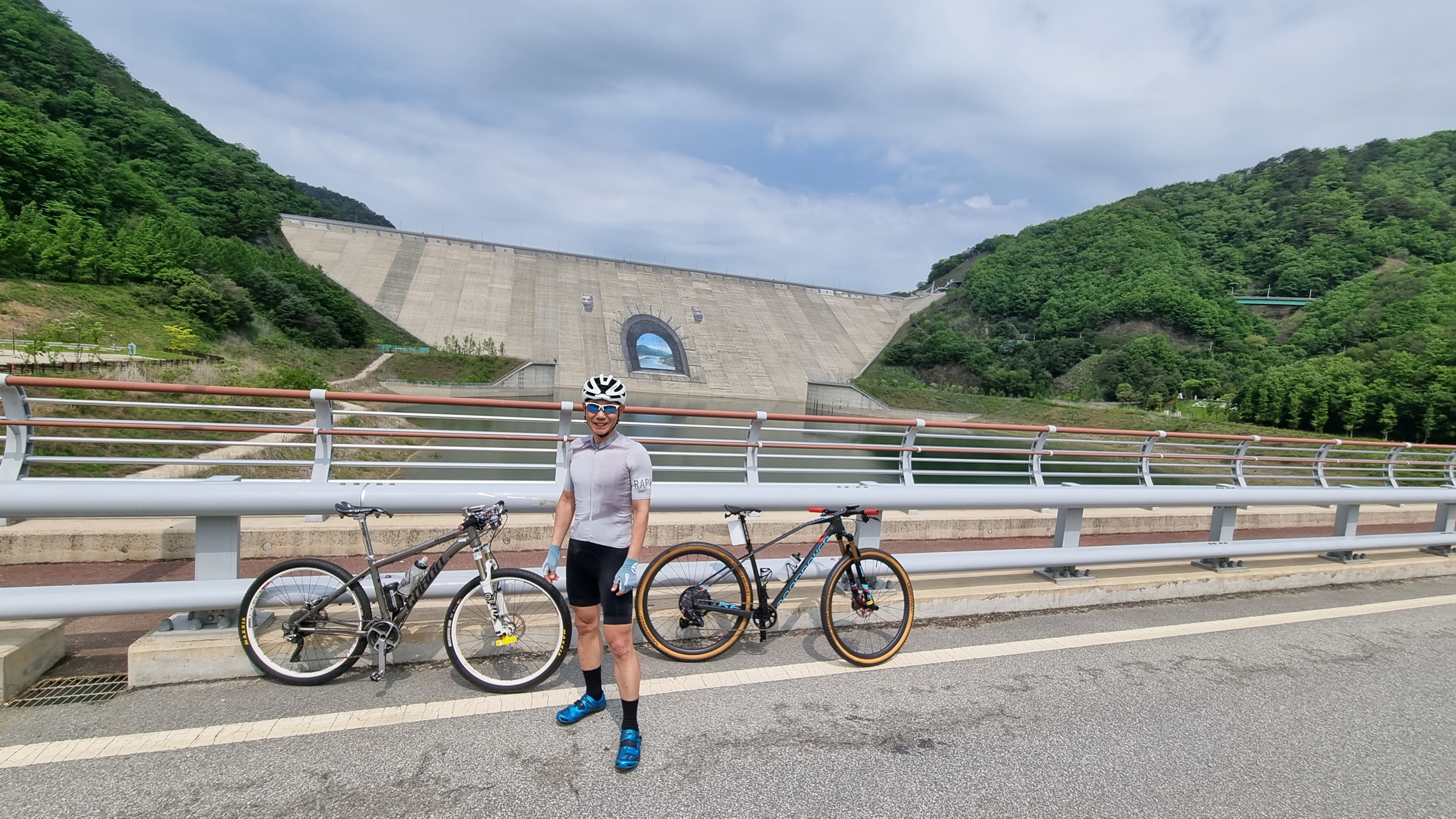 미계측구간인 평화의댐 앞에서 마니또님 만나 서로 사진 찍으며 추억 하나 남김...