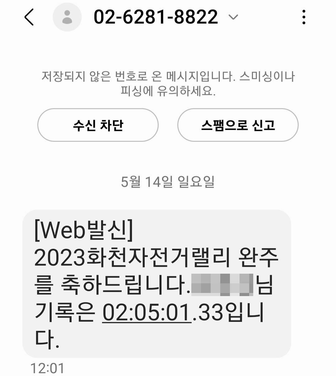 | 2023.01.16(월) 홍천 그란폰도 개인접수신청 완료 메시지... (0) | 2023.01.16 |
