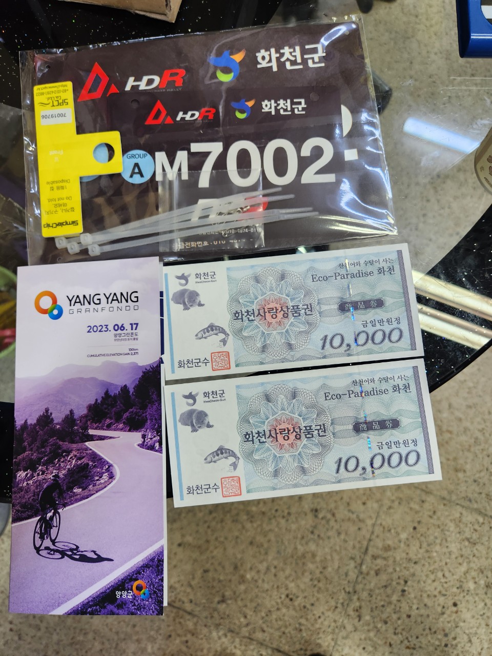 미리 오투바이시클에 도착한 배번과 화천사랑상품권...