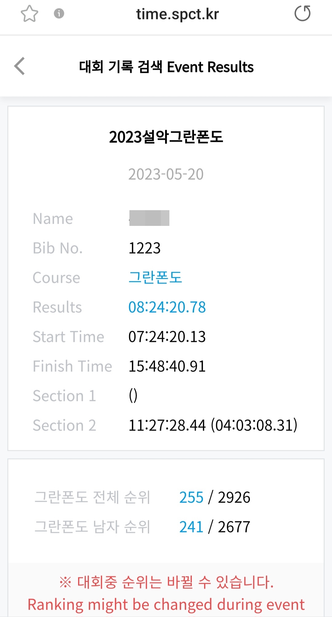 골인... 대회 홈페이지에서...