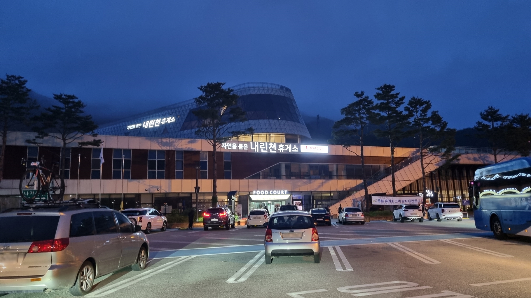 화장실 가기 위해 내린천휴게소 들어옴... 아침은 대회장 근처에서 할 예정이라고...