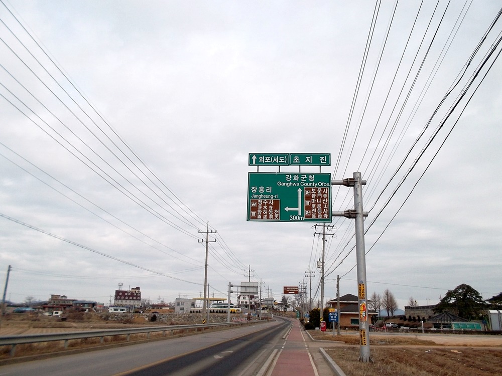 강화시내에서 창후리 방향으로 계속 오다가 이젠 외포리 방향(왼쪽)으로 갑니다...
