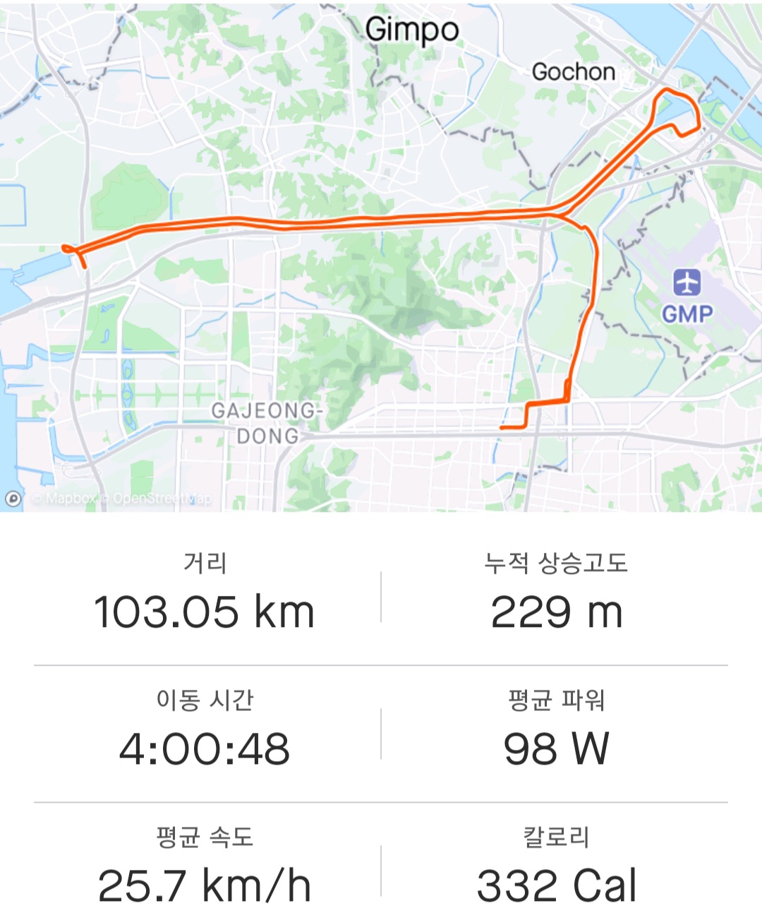 어제 62Km에 이어 오늘 103Km 테스트 라이딩...