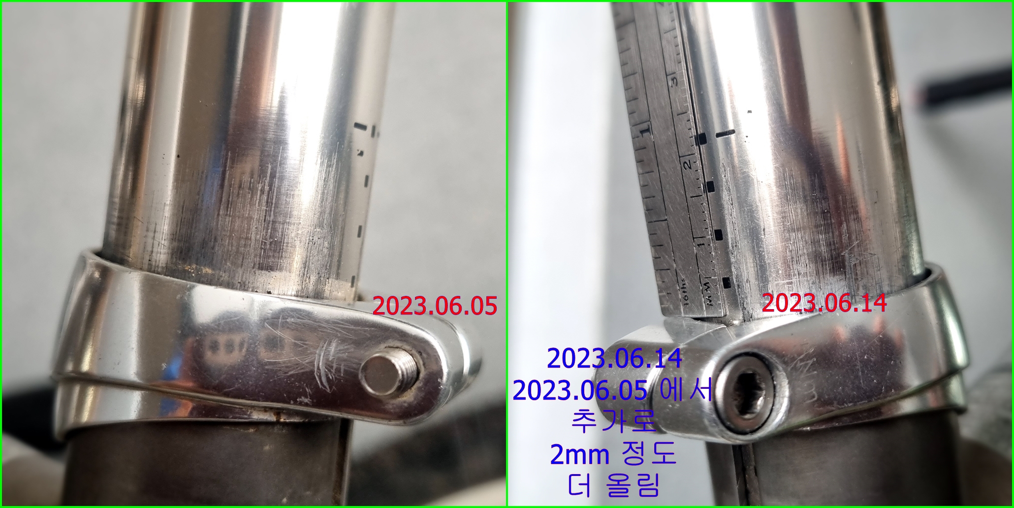 또 한번 더 싯포스트를 대략 2mm 정도 더 올림...
